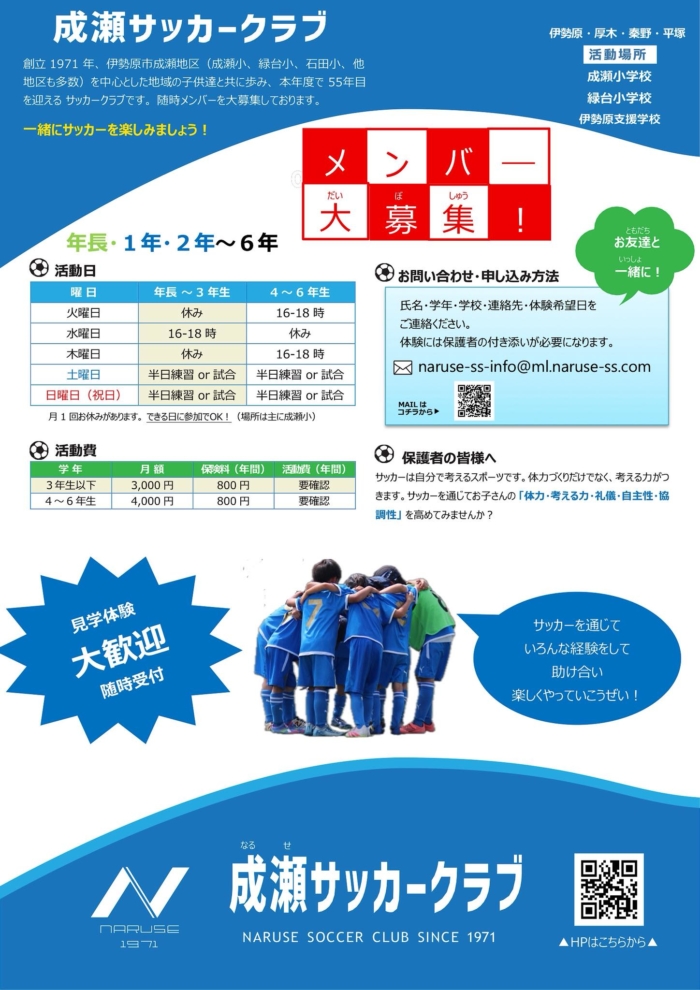 【年長,1,2年生】9月体験会のお知らせ2025年9月4日 [年長、1,2年生 体験会のお知らせ] 新学期が始まりましたので、練習体験会を開催します!たくさんの参加お待ちしてます。お友達を誘って参加してください!体験会は何度でも参加OKです! 9月練習体験会開催日 9月 6日(土)13:00-15:30 成瀬小学校 9月13日(土) 9:00-12:00 伊勢原支援学校 9月21日(日) 13:00-16:00 成瀬小学校 9月28日(日) 13:00-16:00 伊勢原支援学校 ▼詳しくはこちら 59期(2年生),60期(1年生)Posted by admin